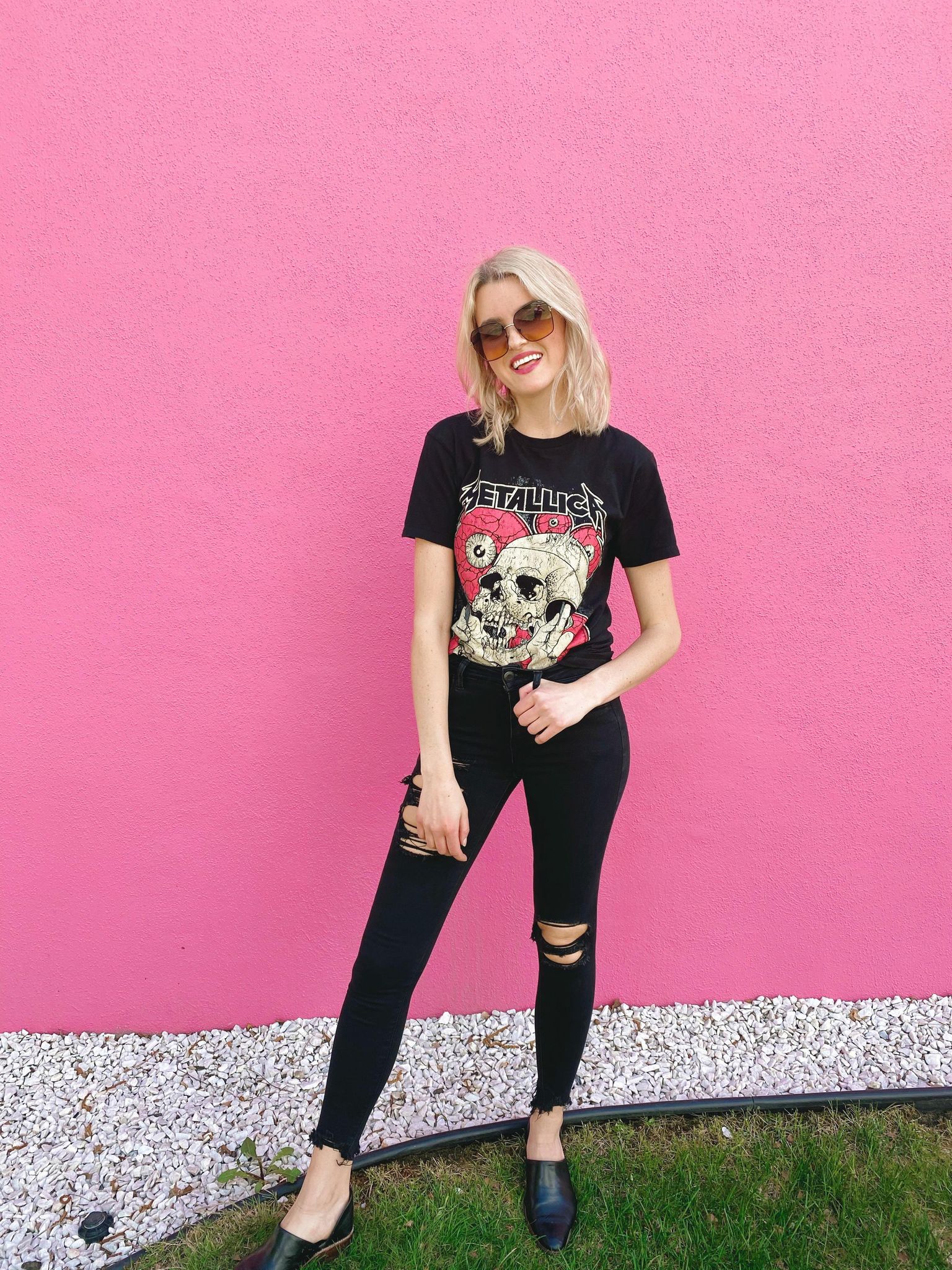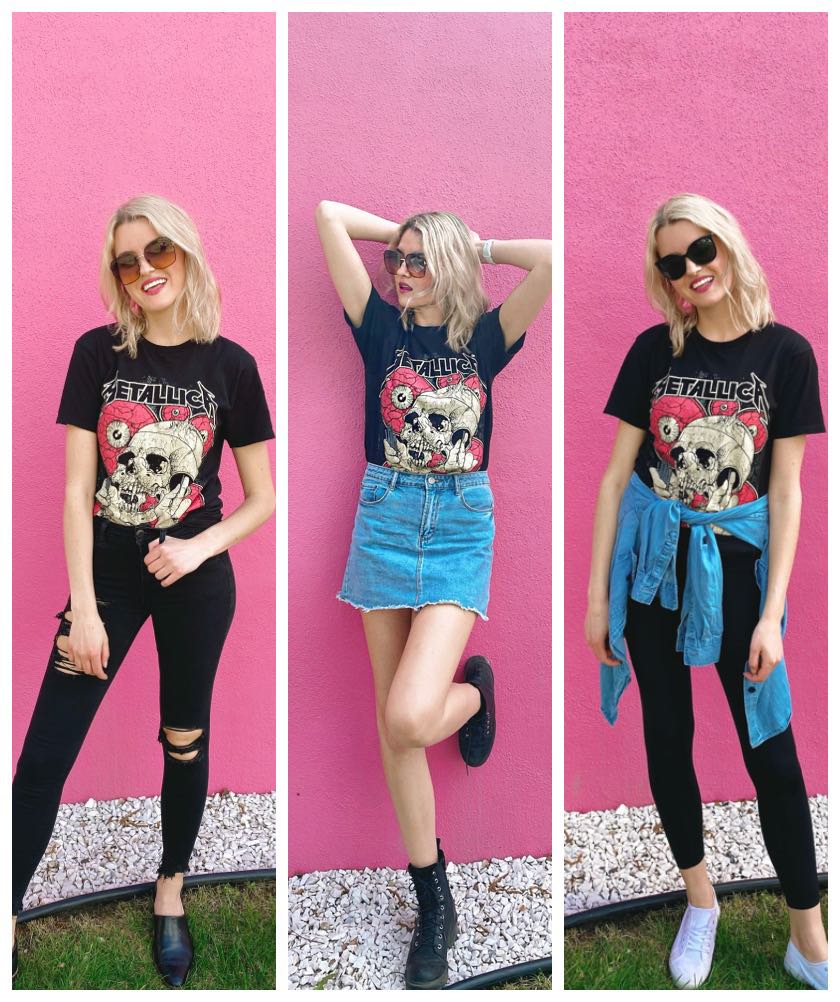 If you were watching my Instagram stories, you would’ve seen I posted a fun reel on how to style this Metallica shirt. I love the versatility!