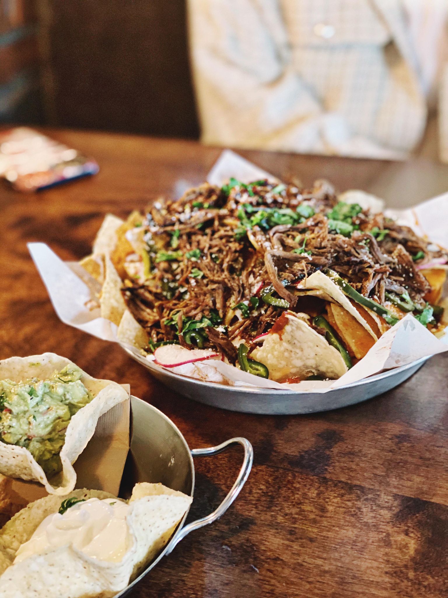 Our next stop was Train Station where we ordered their TNT nachos! This consisted of ½ pound of jack & cheddar cheese, queso fresco, corn tortilla chips, pickled poblanos, red onions, radish, whiskey bbq and buttermilk ranch drizzle, cilantro, and served with salsa verde + sour cream. We added their cajun braised beef and their southwest guacamole as well. I’m not a big beef person but the beef was so flavorable!