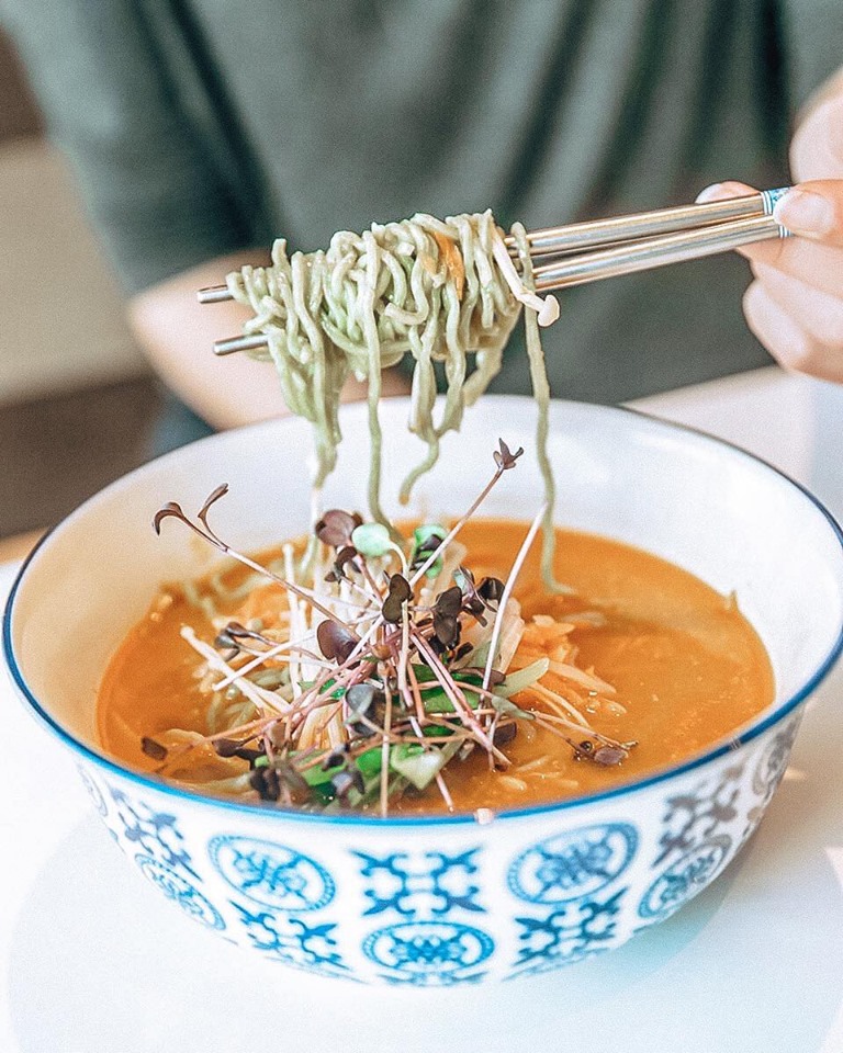 Flip Flops and Hops is located in Glenmore and was recently rebranded from Flux 74. I had never been here for ramen but my followers actually enlightened me that they had it. Their ramen was called the “Tan Tan” and consisted of sesame seed plant-based broth served with green onions, carrots, enoki mushrooms, shallots, ginger and bean sprouts. You have the option of noodles so we went with the green ones. The bowl was visually pleasing with the broth being orange in color. Almost reminded me of laksa soup. In terms of taste, the ramen tasted healthier and lighter but was still very flavorful. The broth is so warm and homey and the soup in general gives all the comfort food feels. I did find the portion a bit small but it depends how hungry you are. I definitely found it less filling than the other ramens. Flip flops and hops also offers ramen at a discounted rate on Sundays so that would be the day to go check them out! Hint hint!
