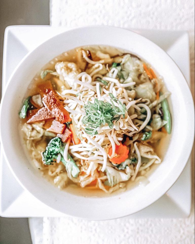 Lastly, our fourth bonus round was at Soy Asian Fusion. They are a cute little restaurant with lots of ramen to choose from. Their ramen was called “Vegan Shio Ramen” and consisted of vegan spinach ramen noodles with vegan shioo (Japanese sea salt) & vegetable, and konbu (kelp) dashi stocks. It was topped of boiled vegetables, bamboo shoots, sliced wood ear mushrooms and garlic onion oil. Presentation wise, lots of great height and veggies. This ramen reminded me a lot of Wasabi’s ramen in terms of some of the veggies being quite random again (ex bamboo shoots, cauliflower). Again, I appreciate lots of veg but less is more sometimes. The broth is quite watery and thinner which again, can be a preference thing if you prefer thicker or lighter broth. All around, definitely a vegan’s delight.
