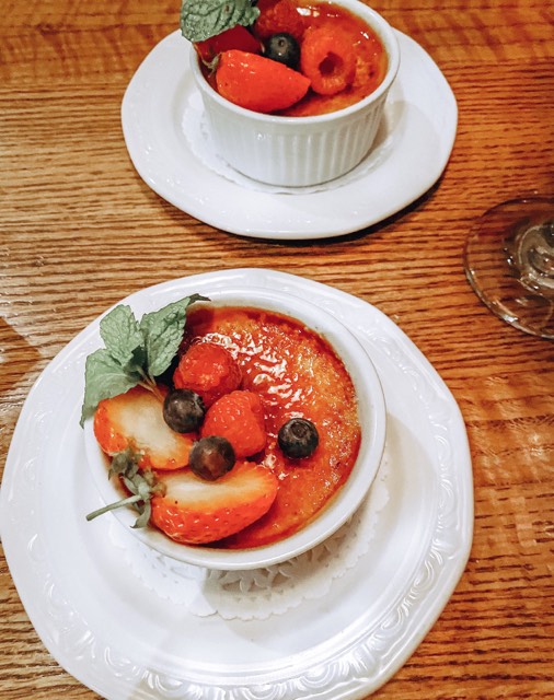 Basil & Mint on the other hand was the complete opposite with their consistency. Their custard was very thin. It was a smaller portion served in a ramekin with fruit on top. It was a very chic, classic take on the dessert, just like the restaurant! It’s exactly what one would picture creme brulee to look like. My main critique with Basil & Mint’s was that the custard seemed almost too thin for my liking and a little smaller than what I would like.
