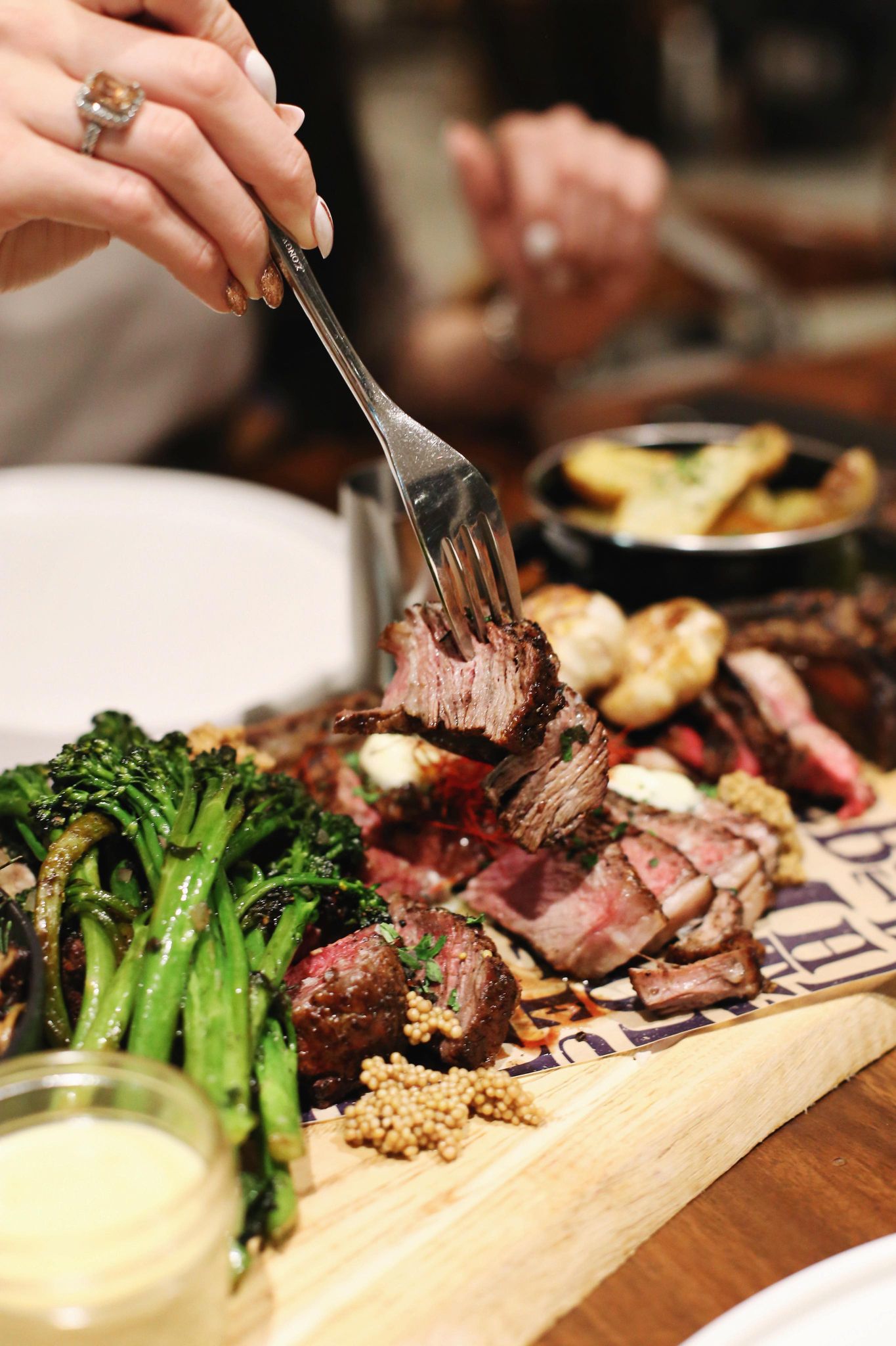 -the steak fixings: sides are key! Going out for a steak dinner is a treat and the fixings can make or break it! Mashed potatoes, roasted veggies, salad, sushi, sauces, whatever floats your boat! While the steak is the main attraction, it’s great to have side dishes that complement it!