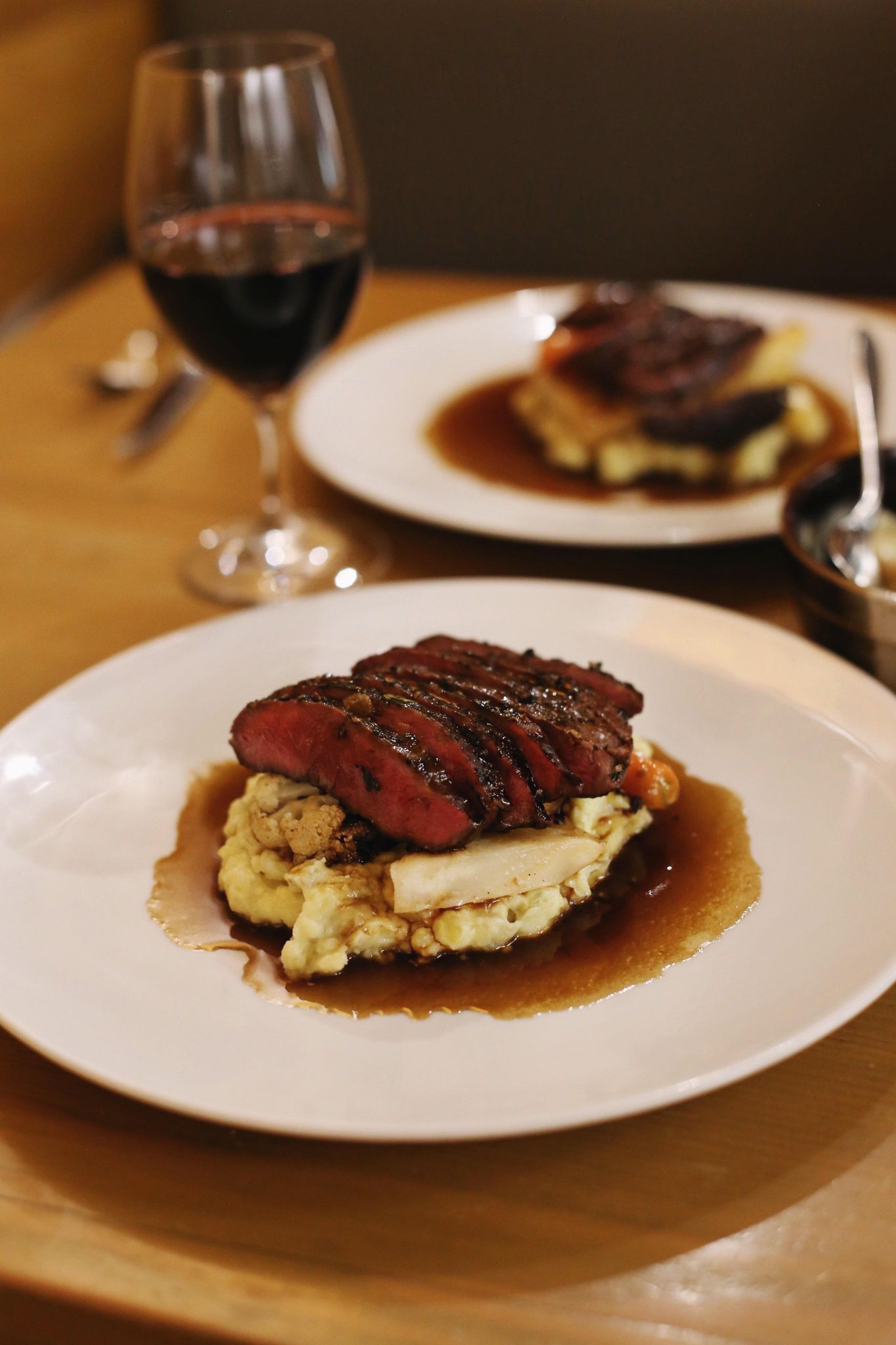 Our second stop was West Coast Grill + Oyster Bar at the Prestige Hotel in Downtown Kelowna! You might recognize their other location in Sooke, BC. Both Britney and I had never been before so we were looking forward to trying their steak. The West Coast Grill is primarily known for their seafood, but they do have some great steak offerings. They had three different options for steak to choose from. Britney got their surf and turf and I got their Wild Mushroom New York striploin. Both dishes were accompanied with roasted potatoes and roasted veggies! Taste wise, this steak dinner reminded us more of a “home cooked meal”. It was definitely more of a tougher cut which isn’t personally my favorite (but maybe its yours). The service was fantastic though, and they had a great wine selection! I look forward to coming back to try something else.